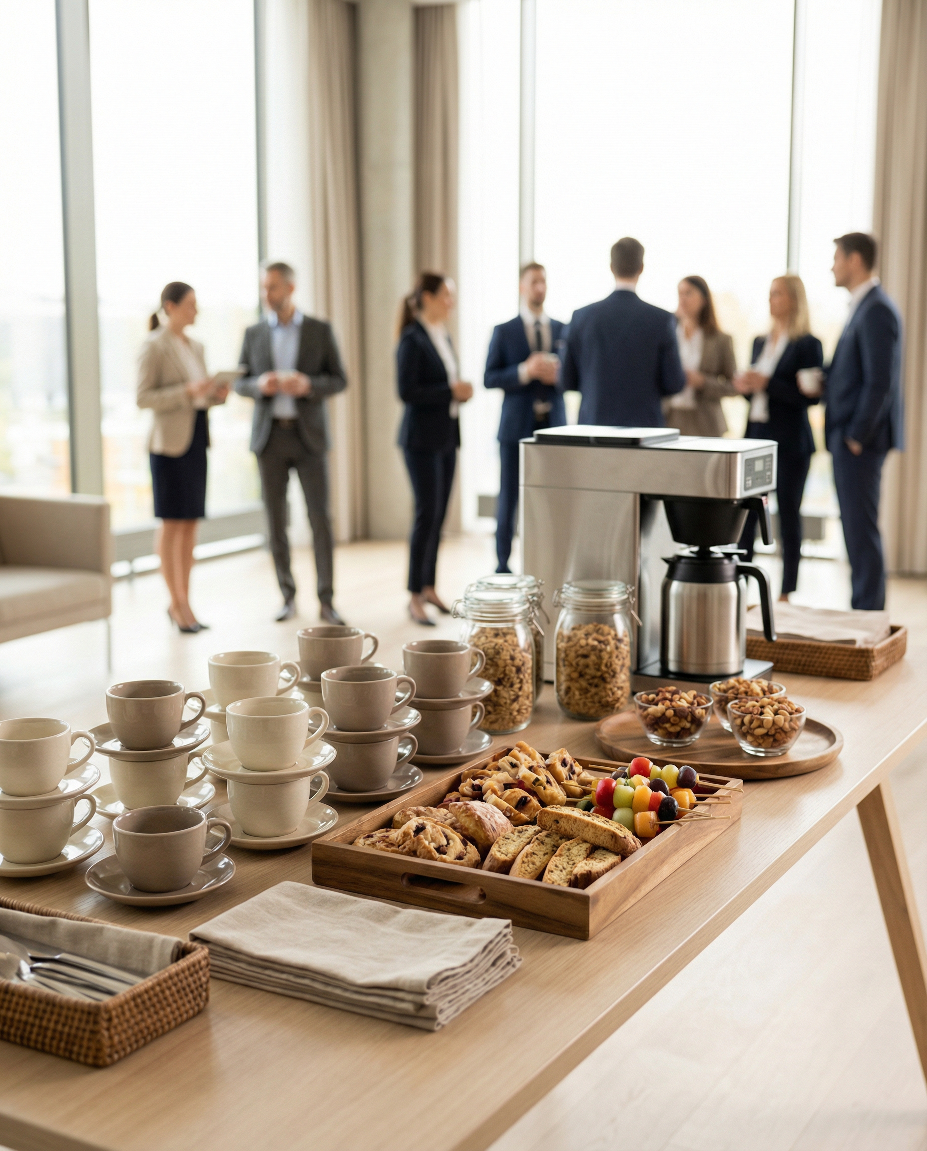 Ob Workshop, Tagung oder Business-Meeting: Unsere Kaffeepausen liefern Energie, Struktur und Genuss. Frisch zubereitet, pünktlich geliefert und perfekt abgestimmt auf deinen Ablauf.